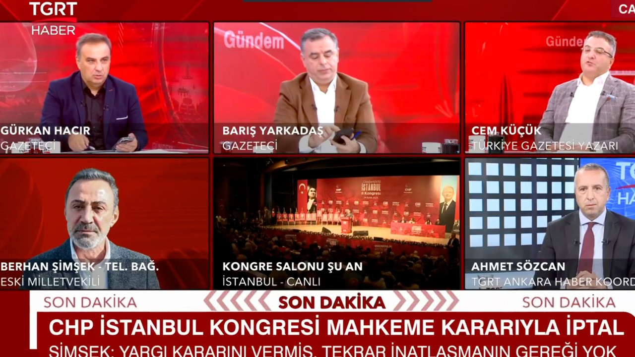 Kongremde karar YSK'nındır abi, yapmayın. YSK olağanüstü kongre. Hukuksuzluğu onaylamayalım. YSK burada yetkilidir, bakın yapmayın etmeyin. Ben de CHP'ye muhalif biriyim ama burada yetki YSK'nındır.
