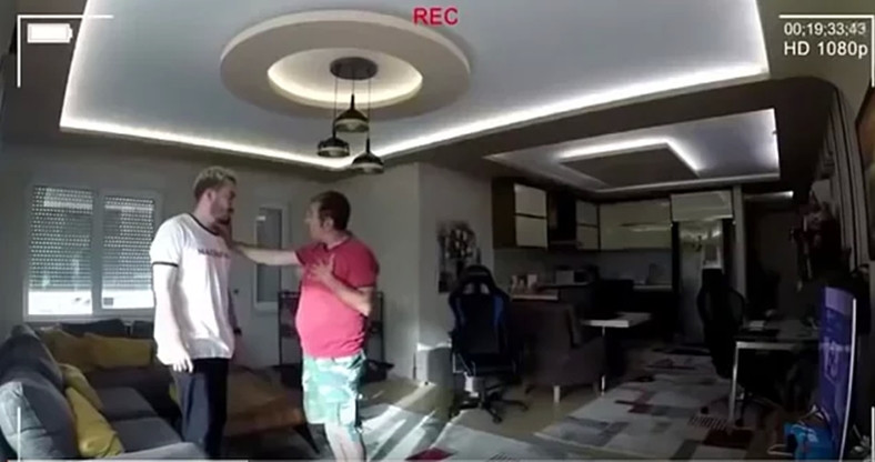 Enes Batur'un küfürlerine ve hakaretlerine dayanamayan amcası Murat Sungurtekin, Batur'un üzerine atlayarak yumruklamaya başlıyor.