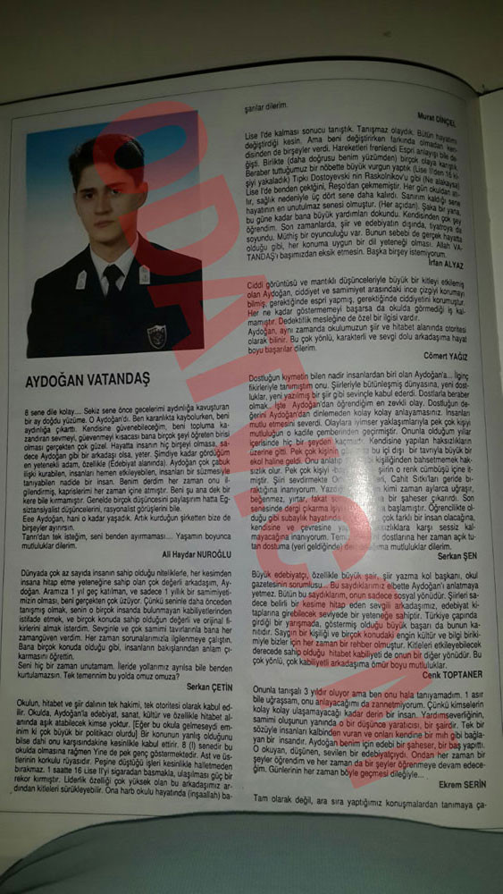 Oda TV'nin haberine göre "Fuat Avni" hesabını yönettiği tespit edilen Aydoğan Vatandaş'ın Deniz Lisesi yıllığı: