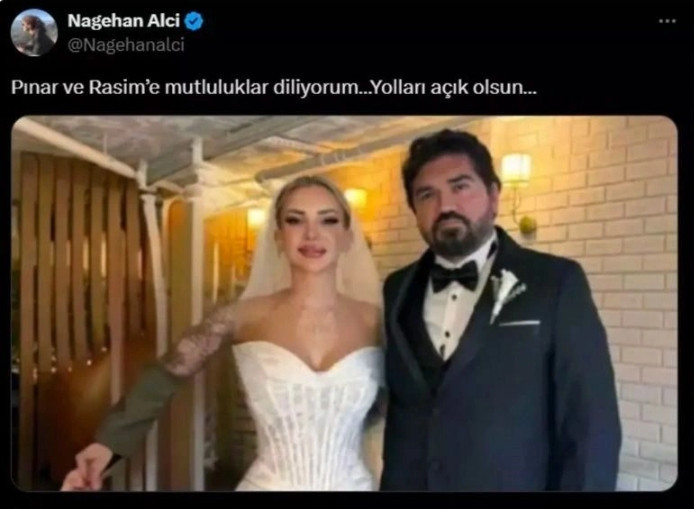 Çifti tebrik edenlerden biri de Kütahyalı'nın eski eşi Nagehan Alçı oldu. Çiftin nikah fotoğrafını sosyal medyada yayınlayan Alçı, "Pınar ve Rasim'e mutluluklar diliyorum… Yolları açık olsun" ifadelerini kullandı.